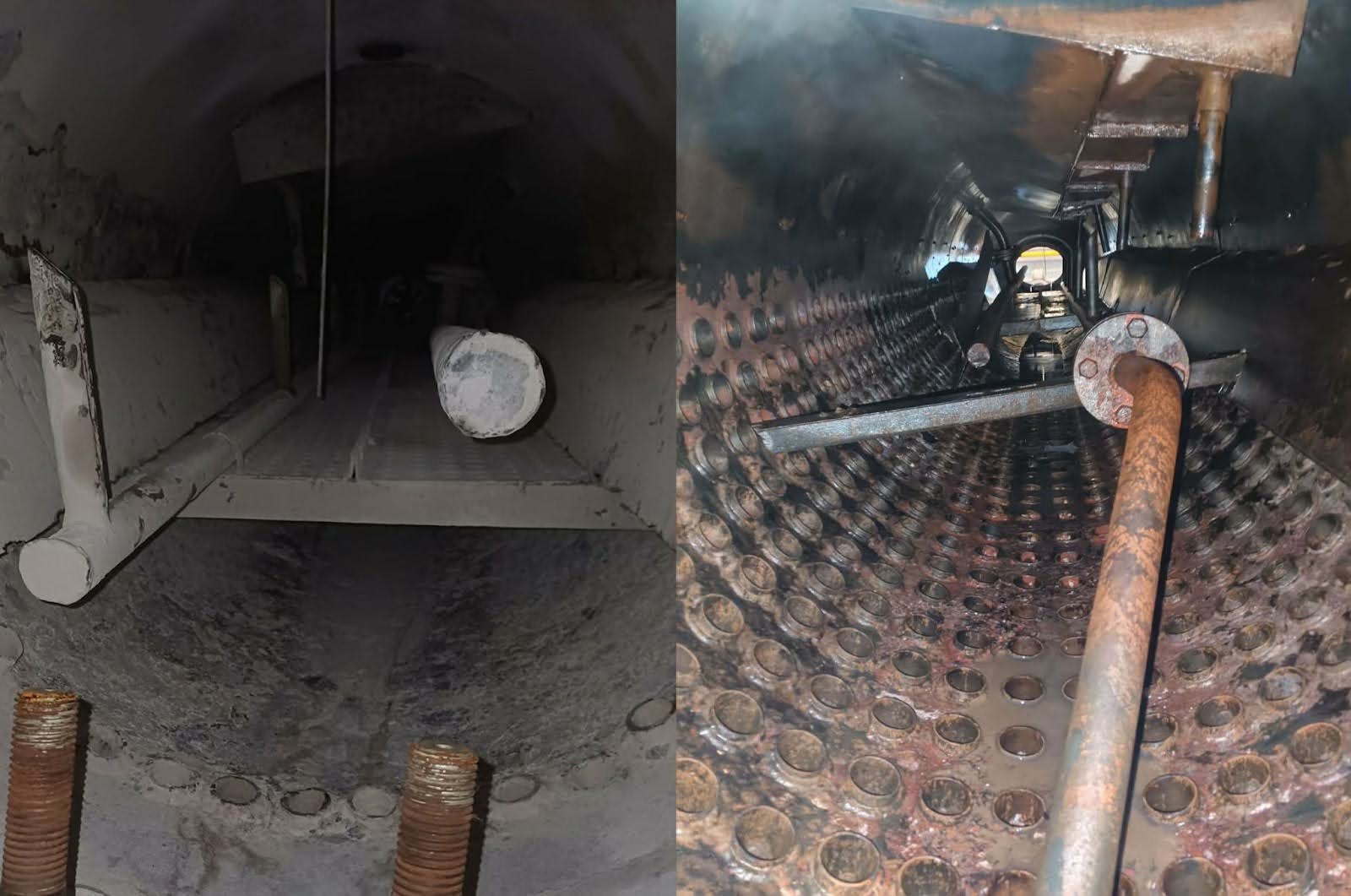 Steam boiler before and after water treatment from Aquasafe.